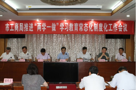 今年以来,市工商局各党支部在市局党组坚强领导下,以“两学一做”学习教育常态化制度化为引领,以“建过硬支部,做合格党员,当干事先锋”为载体,紧扣“学”的内容,“做”的标准,“改”的要求,真学真用真改,支部建设更加过硬,党员作用发挥更加明显。 各党支部按照市委关于推进“两学一做”学习教育常态化制度化的要求,结合工作实际,制定了“两学一做”学习教育常态化制度化实施方案和学习配档表,综合运用“周一例会”、“主题党日”和“三会一课”等形式,定期组织党员干部上党课、研讨交流、学习党章党规和习近平总书记系列重要讲话精神,做到学有方向、做有目标,打牢根基、确保实效。近期,各党支部组织党员学习廖俊波、黄大年同志先进事迹,认真研读《习近平的七年知青岁月》,每名党员干部均写出了1500字左右的心得体会。 市工商局召开推进“两学一做”学习教育常态化制度化工作会议。